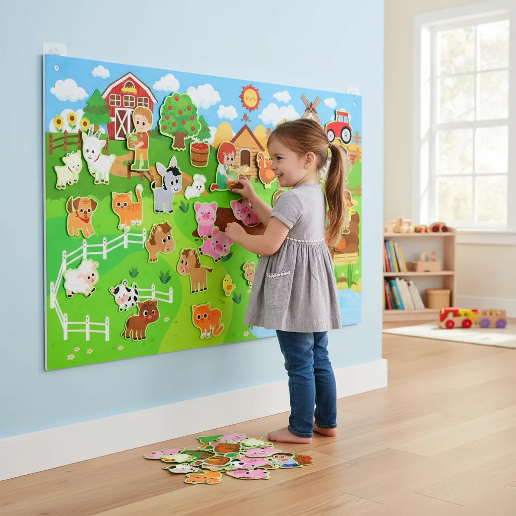 Absolument! Conçu pour les petites mains, les pièces en feutre sont douces, légères et adhèrent facilement au tableau. Il est parfait pour les tout-petits qui commencent leur exploration du monde.