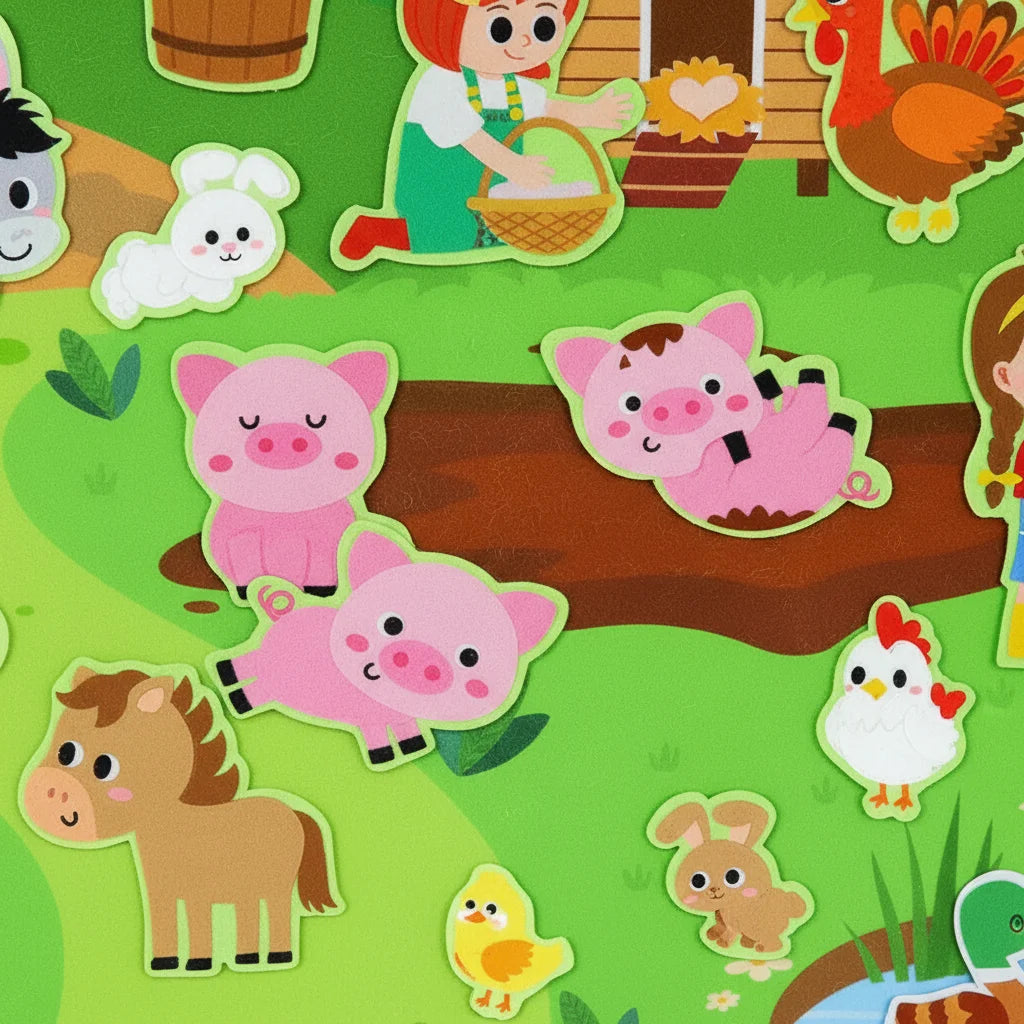 Voyez leurs yeux pétiller de curiosité ! Chaque pièce de feutre est une invitation à créer des histoires et à explorer la vie de la ferme. Un véritable éveil pour leur imagination débordante.